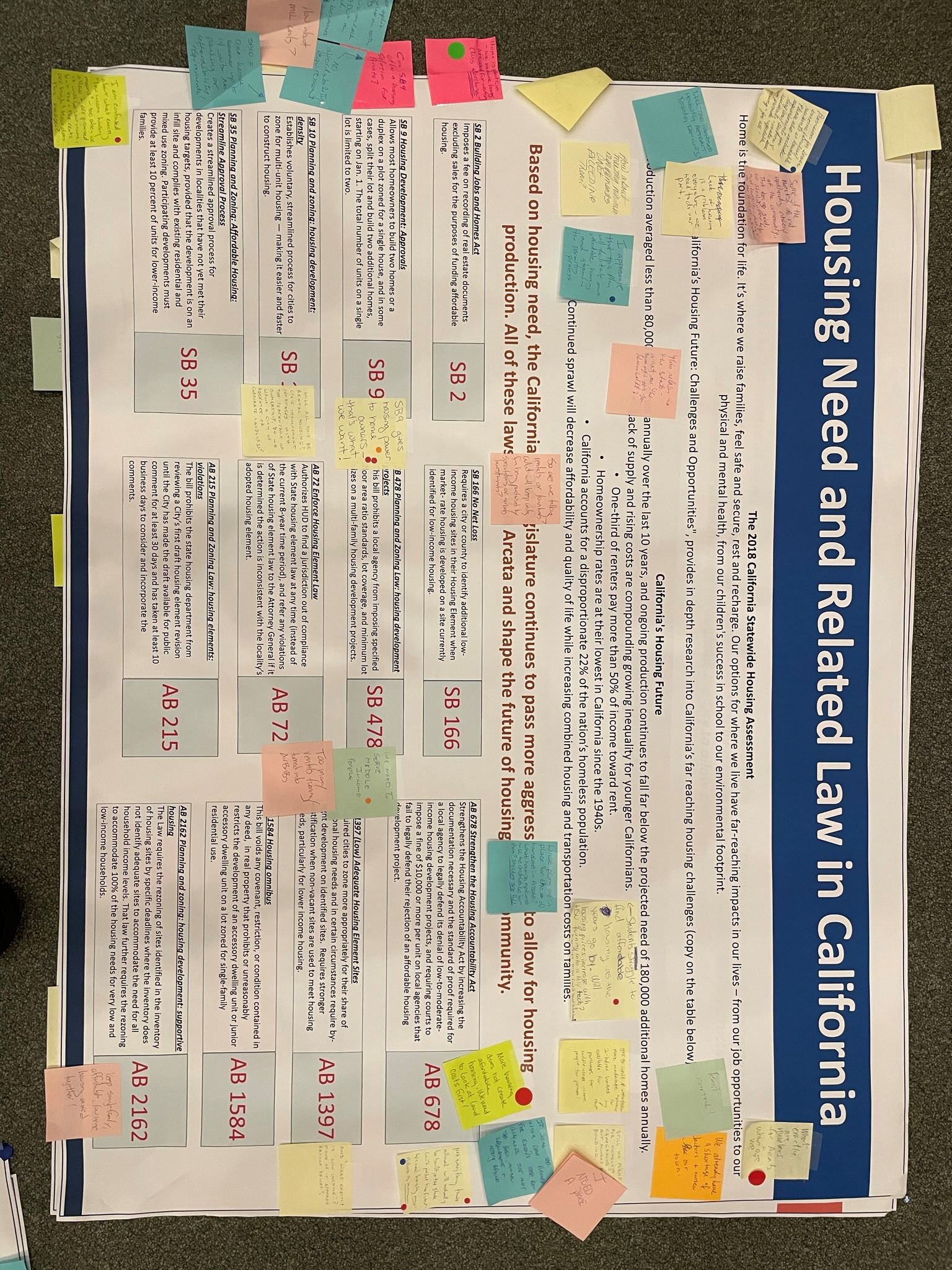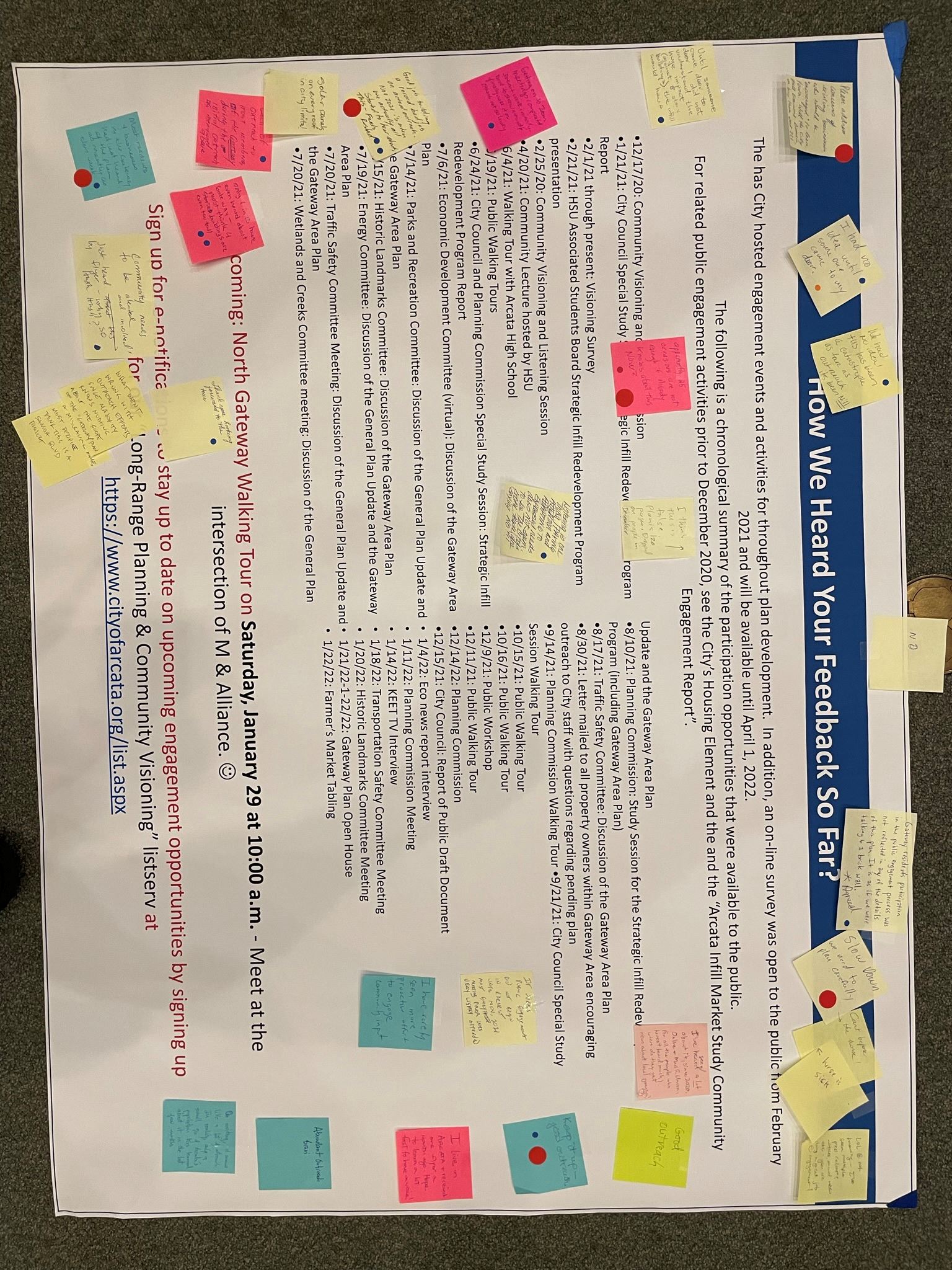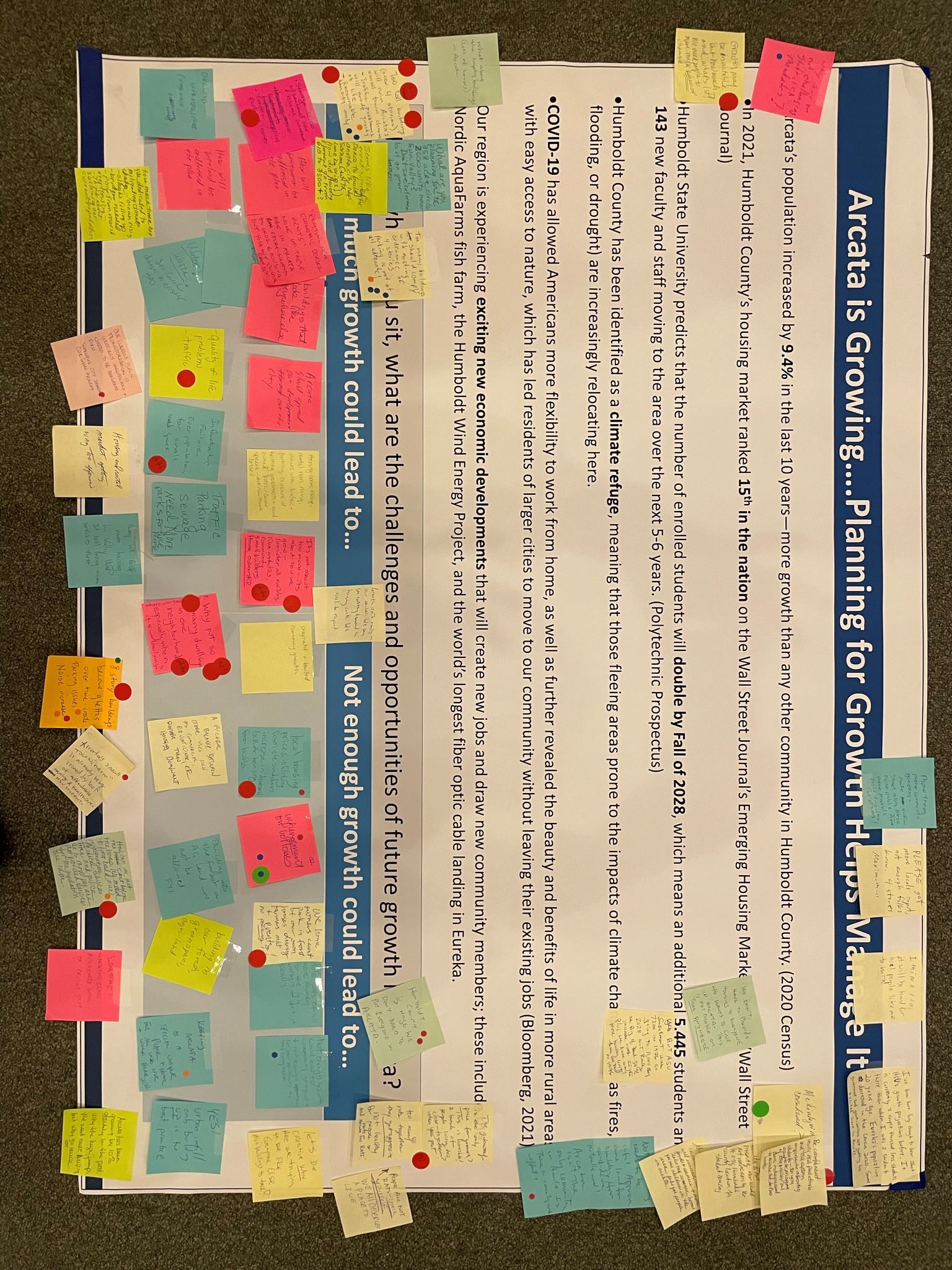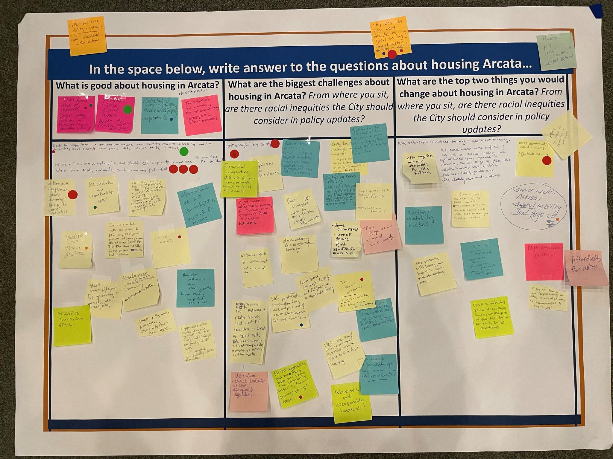 The City has worked to engage a wide variety of community stakeholders in current planning efforts, with an emphasis on bringing new people to the table and engaging a diverse array of current and future residents, including Cal Poly students and local organizations. Given the City’s interest in reaching a variety of community members—including both those who currently live inside Arcata’s city limits as well as those that do not but would like to—staff used a multi-pronged engagement approach to gain insight into people’s experiences with housing and provide various opportunities to offer input into the housing plans under development. The Racial Equity Engagement Report associated with the General Plan Update provides important additional data alongside the full engagement report.